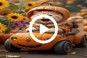 Katzen beim Kürbisse einsammeln. Ein nettes KI-Video.